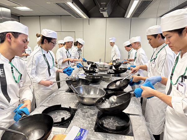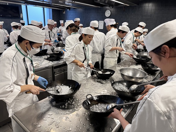 中国料理の実習では、初回の授業で氷を使って鍋振りの練習をしましたが、
