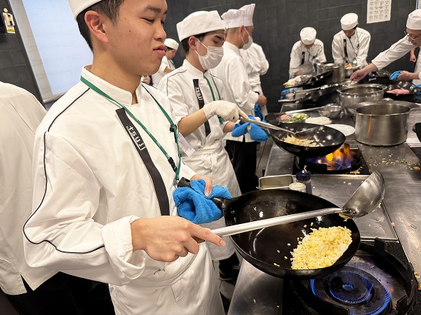 初めて扱う中華鍋に学生たちは大変苦戦していました。
