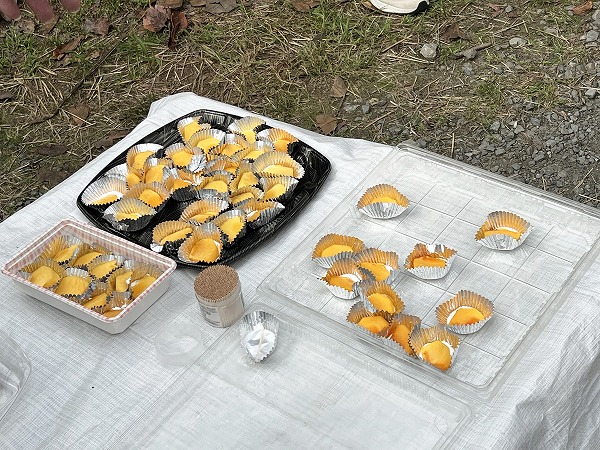 一方、「渋柿」も体験用にご用意いただき、うっかり口にした学生は「うわっ、渋い〜!」と大騒ぎ。