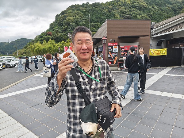途中のサービスエリアでは、早くもお土産選びや軽食を楽しむ学生も。