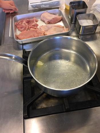 さばいた鶏をソテします。