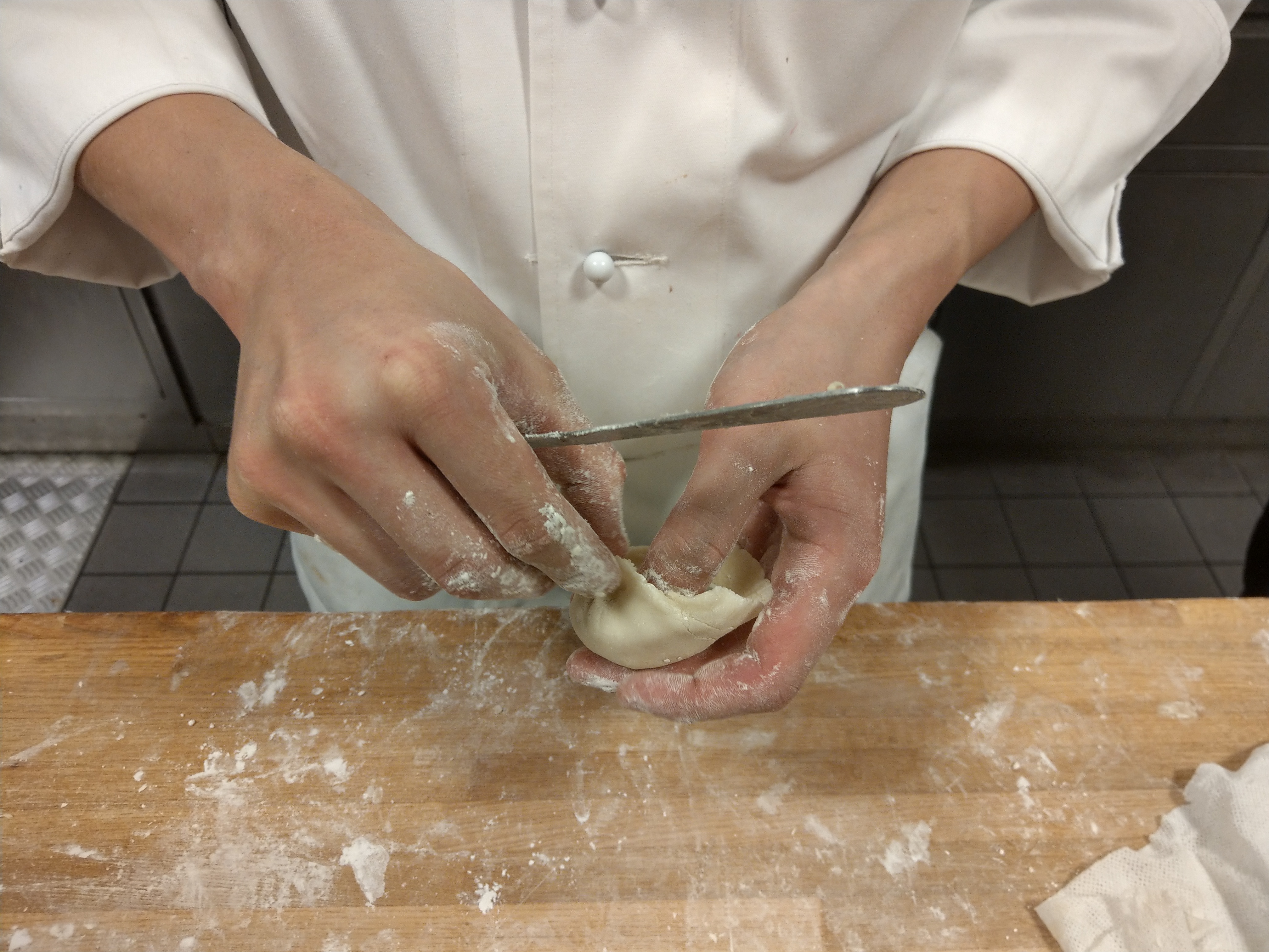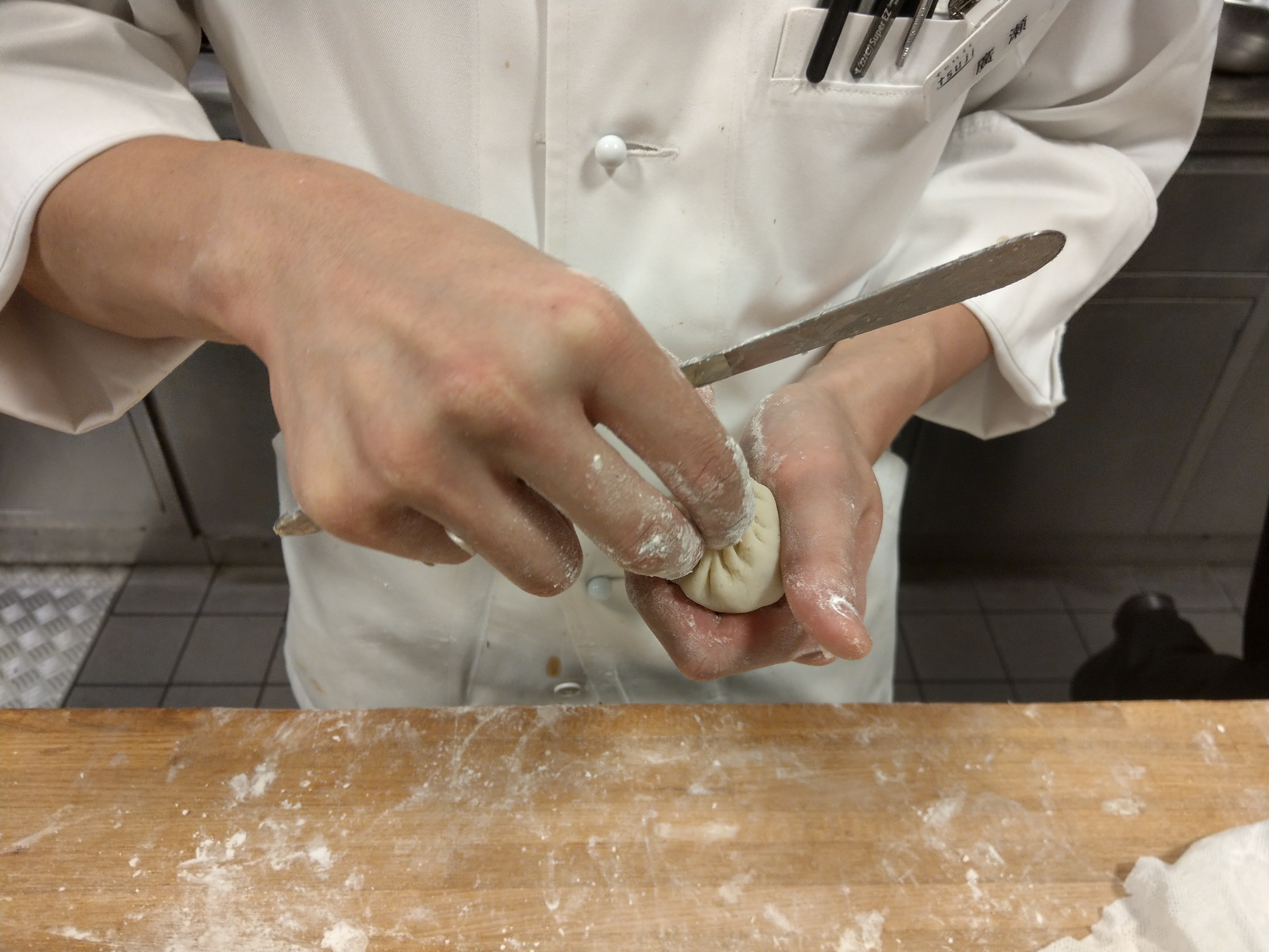 練習している生地は天然酵母を使用した生地で、イーストの生地に比べ包みにくいのです(‐∀‐;;