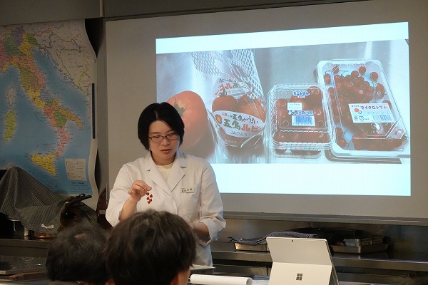 続いて、トマトの授業。トマトは、大きさによって種類が分けられます。
