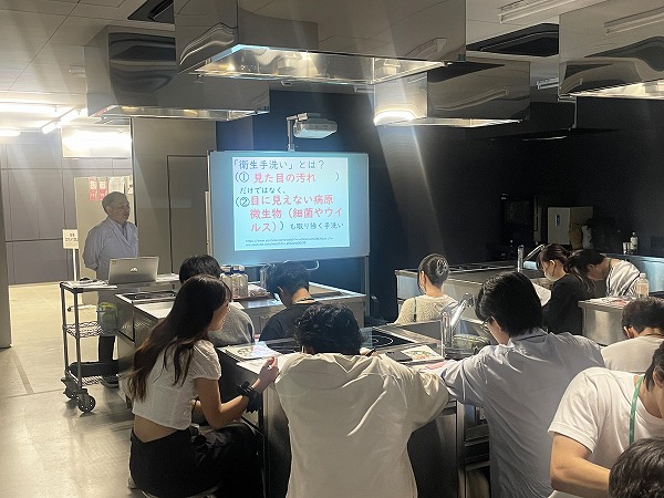 基本的な技術を習得しつつある今だからこそ、「食品衛生の基本の基」を、もう一度見つめ直してもらう授業です。