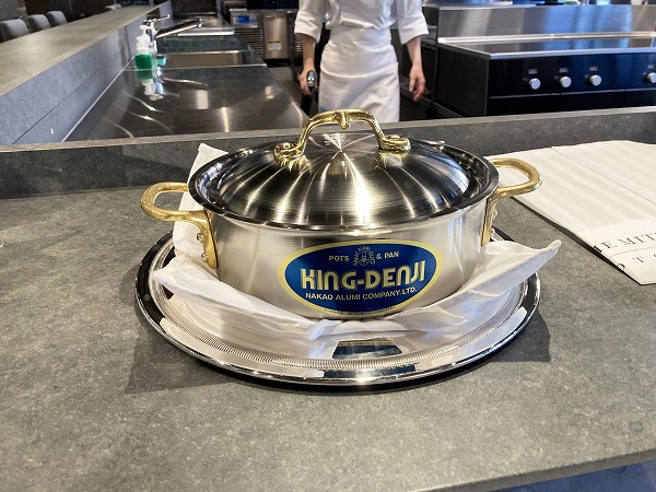 もも肉はラグーもしくはフリカッセにして別鍋に入れて提供することがルールです。