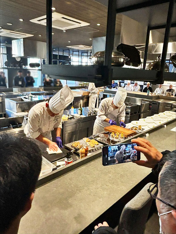カウンター席からは、招待されたスポンサー様や選手の関係者、料理人たちが選手の仕上げ、
