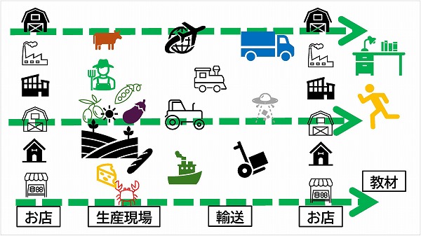 一つの食材だけでもこれだけの手を介して生産地や生産工場から届けられていることを考えると、