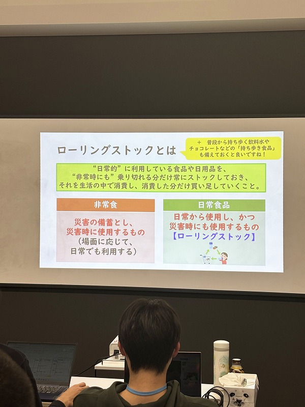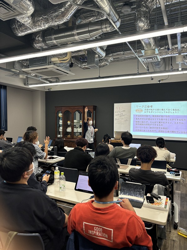 授業では、災害時の食について、『自身の備え』と『調理師として、