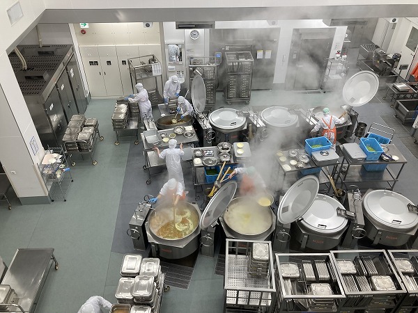 早速、見学通路に移動して、大量調理の様子を見学します。