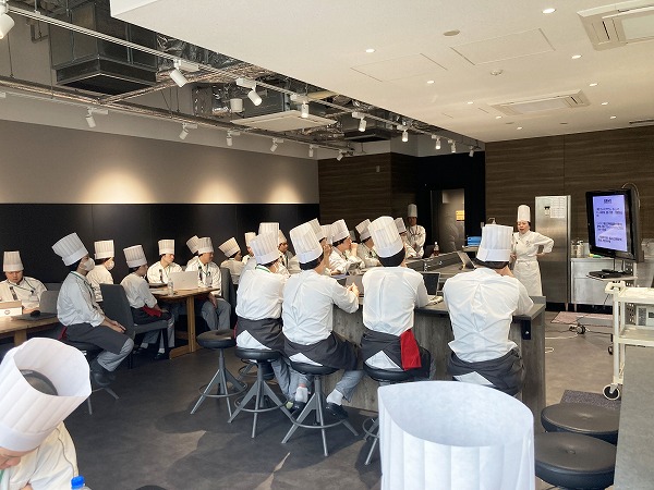 この日は実習メニューのデモンストレーションが実施されていました。内容は「豚のシャルキュティエール風ランチ」。