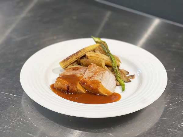 豚肉の火通りの目安は、中心温度65℃15分以上までスチームコンベクションオーブンで火を通します。