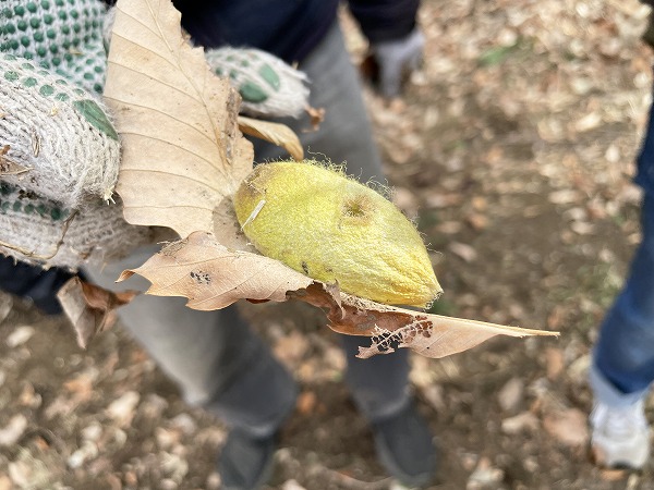 落ち葉の中から、珍しい天蚕(てんさん)※4 の繭と思われるものを見つけるなど