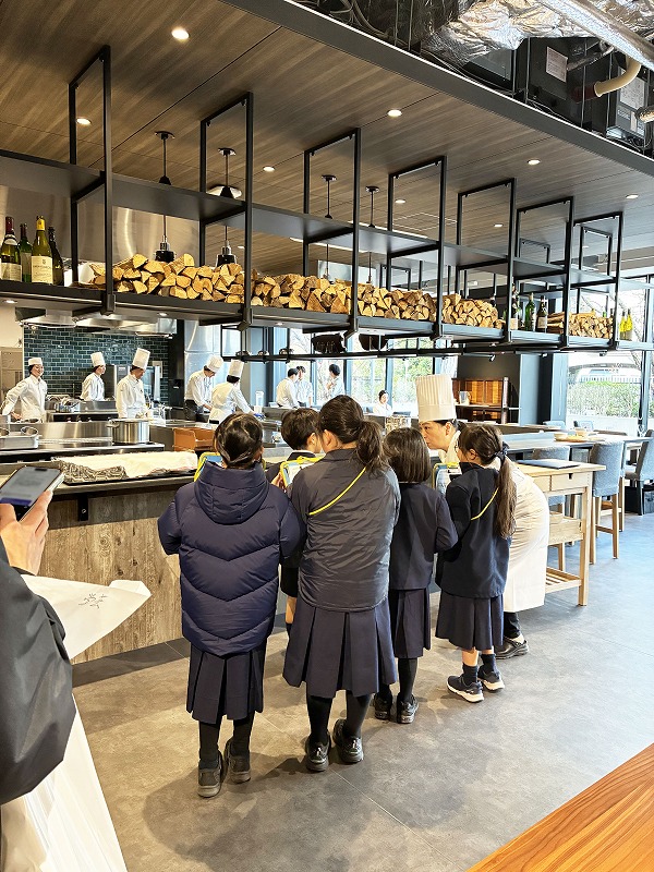 こちらも学生たちが開店準備に追われている様子を、ガラス越しに一生懸命見学していました。