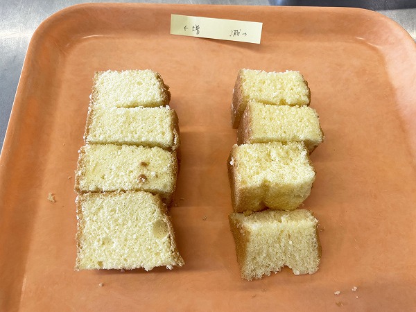 基本の配合から薄力粉を25%増減させた2種類のパータ・ジェノワーズを食べ比べしました!