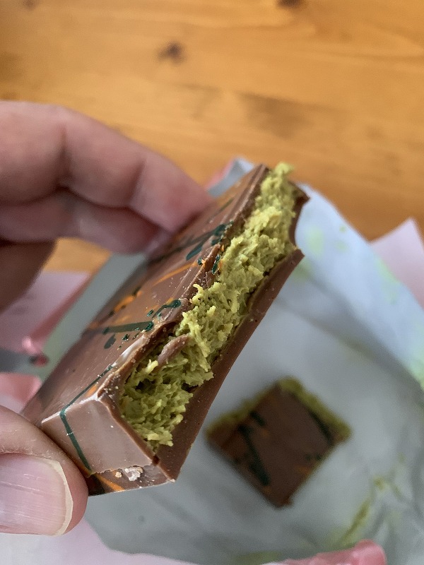 ザクザクのピスタチオフィリングとチョコレートの絶妙な味わい。