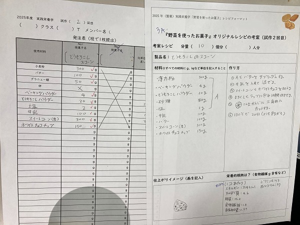 完成したお菓子は後日みんなで試食をして、それぞれ評価や改善点を話し合っていきます。