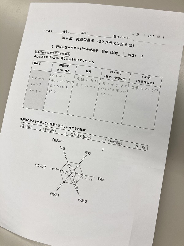 今回の授業は前回試作したお菓子を先生方が点数で評価し、改善点などを話し合う回です。