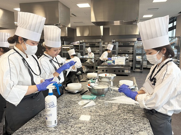 製菓応用技術マネジメント学科の2年生は、興味のあるお菓子を作成していました。