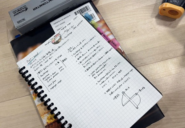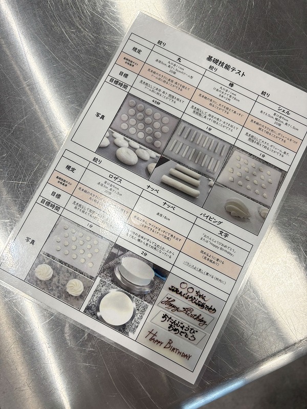 文字を描くパイピングなど、1年生の間に習得したい技術が書かれたシートをもっています。