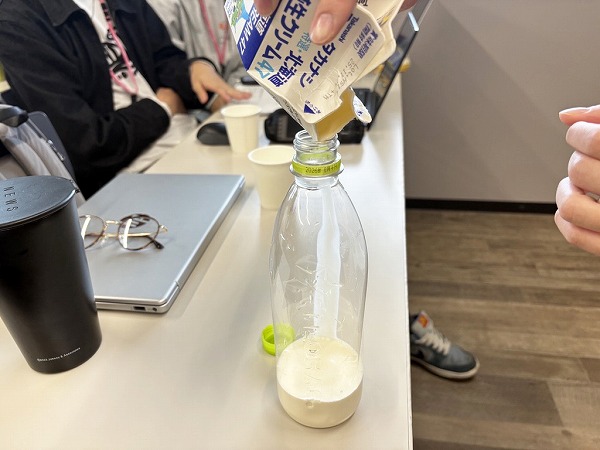 食品学の授業で【乳脂肪の特徴を理解してバターを作ってみよう!】の授業を行いました。