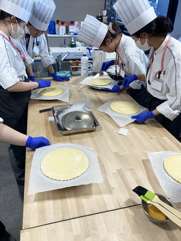 1年生の製菓実習では、1人1個ガレット・デ・ロワをつくっていきます。