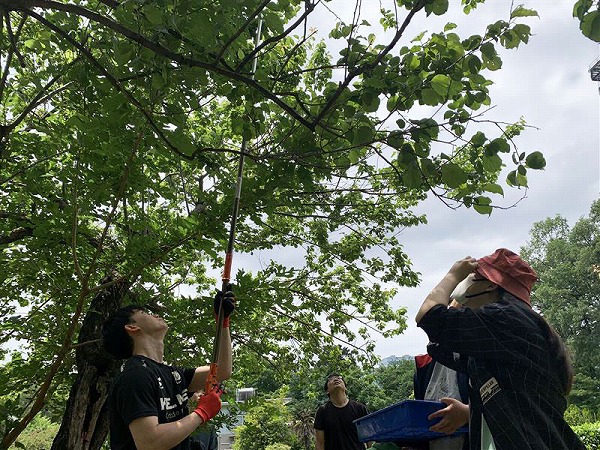 5月のくいしんぼうラボでは、学芸大学構内の畑において青梅の実の収穫が行われました。