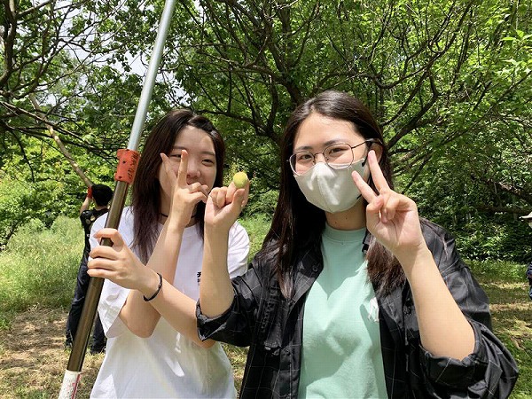 梅の実の収穫は初めてという学生がたくさんいました。