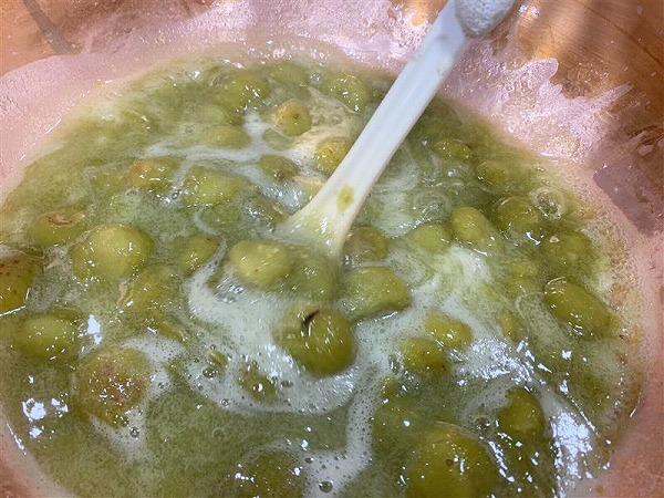 ひと手間ですが、灰汁をきちんと取ってあげることによって青梅のえぐみがなくなりますので大切な作業なんですよ。
