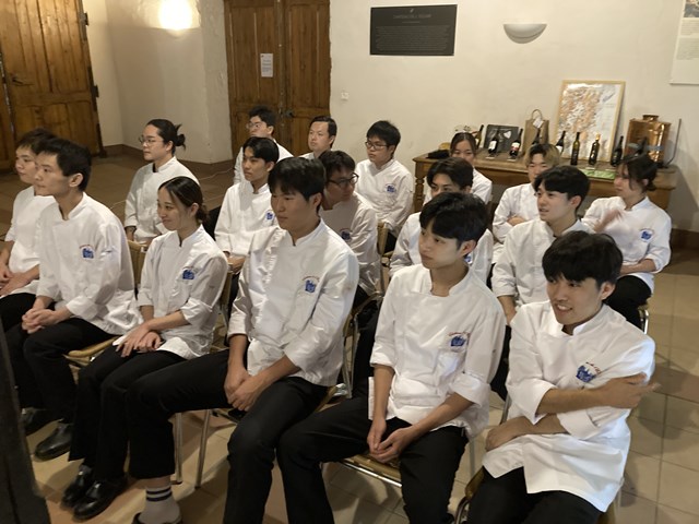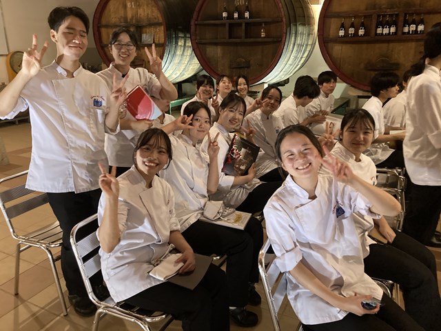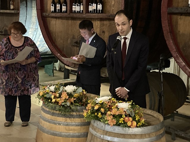 修了式はボジョレワイン醸造所「シカレックス社」内の大きな樽の並ぶ部屋で行われました。シカレックス社の2階は研究生の寮としても使われているので、そこに住んでいた人にとってはなかなか感慨深かったと思います。