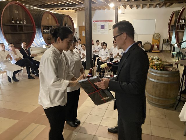 ディレクターからの挨拶の後は各賞の発表と授与が行われました。フランス語を特に頑張った人への賞、サービスを頑張った人、技術習得を頑張った人、もちろん全研究生が頑張りましたが、その中でも目立った人、成長があった人たちに各賞が授与されました。全ての分野において最も優秀だった研究生には最優秀賞が贈られました。