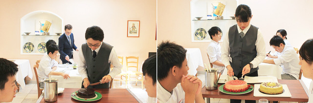 サーヴィスは今の仕事の量になれて、料理をお客に提供したり、フロマージュ(チーズ)やケーキを目の前で切り分けたり、いろいろな作業を効率よくこなせるようになりました。