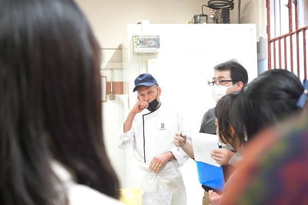ショコラティエの見学は初めての研究生も多く、興味深々で聞いていました。