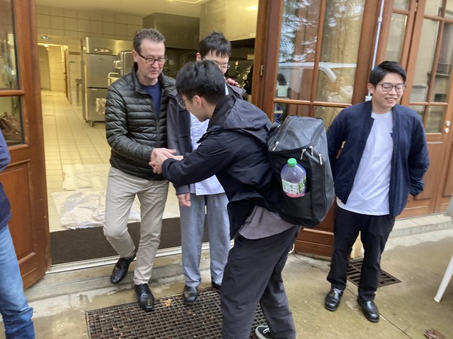 朝早い電車に乗る人はシャトーを7時前に出発!それ以降に出発の皆さんもお見送りに来てくれていました。先生方とも最後の挨拶をして車に乗り込みます。5か月間過ごしたシャトーでの生活にあまりにも慣れ過ぎて、ここを離れる、ということが実感できない、と言う研究生もいましたが、授業が大変だったりした中でも居心地のよいシャトー生活だったようです。
