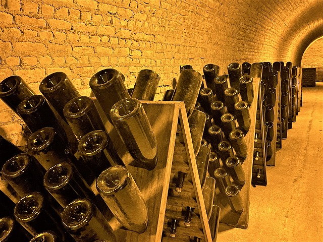 シャンパーニュはワインの中でも特殊で、発泡酒であるのに加え「シャンパーニュ地方で作ったブドウを使用し、決められた醸造法でシャンパーニュの土地で作られたもの以外はシャンパーニュと呼んではいけない」という決まりがあるため、今回は真のシャンパーニュを現地で学ぶことになりました。「決められた醸造法」の中には「決められたワイン品種」も含まれます。ピノノワール、ピノムニエ、シャルドネという三種類のブドウ品種以外は使用してはいけないルールです。ランスからエペルネに移動する途中に広大なシャンパーニュ用ブドウ畑もバスから見ることができました。