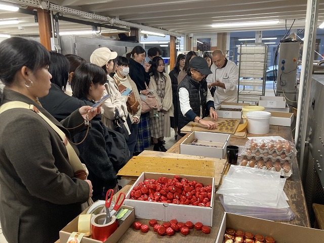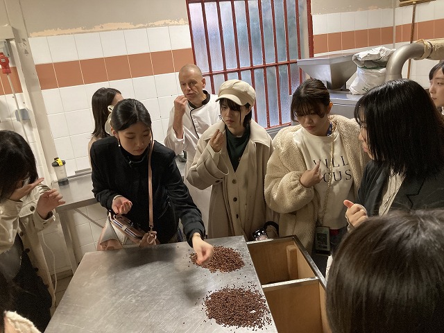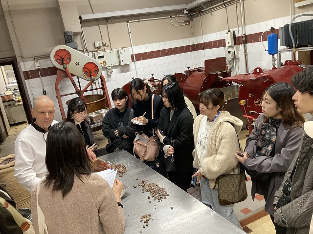 ベルナション見学にて。チョコレートの作り方の説明を受け、試食もさせてもらいました。