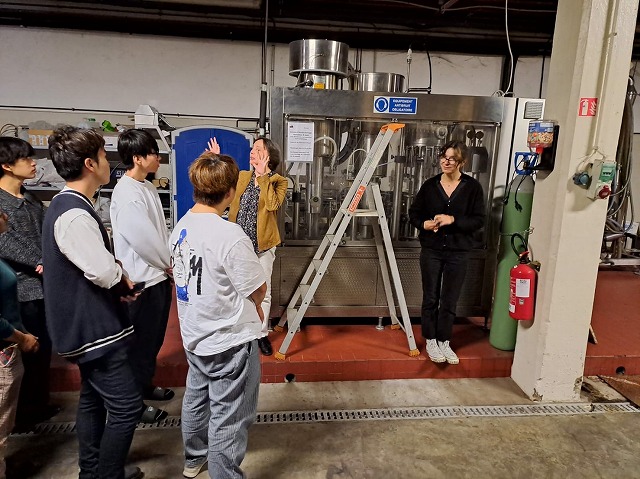 週末に入る前の金曜日はボジョレワインの醸造所「シカレックス社」を見学しました。シャトーの敷地にあるこちらのワイン醸造所はその名も「シャトードレクレール」というワインを醸造しています。また、ワインの研究所として日々品質開発のための研究などを行っているところです。こちらが今期研究生にとっては初めての校外授業でした(近いので徒歩での移動でしたが)。
