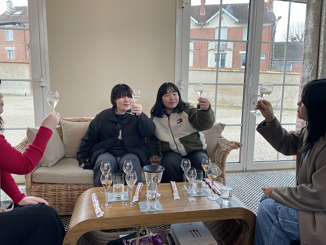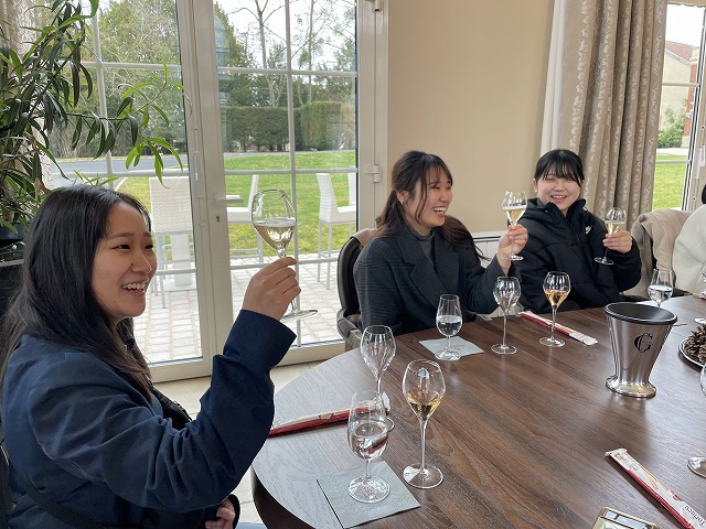 見学後はシャンパーニュの試飲です。いわゆるスパークリングワインとシャンパーニュとは別物であることを学んだ段階で味わったシャンパーニュの味はいかがでしたでしょうか?シャンパーニュの土地で獲れたブドウで厳しい規制をクリアしたものだけがシャンパーニュと名乗れます。その土地で味わったシャンパーニュは格別だったのではないでしょうか!良い思い出になったと思います。