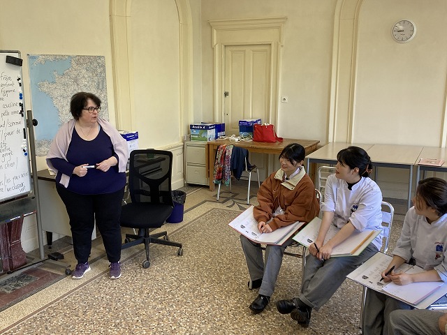 実習中もフランス語習得の機会は多くありますし技術の先生による単語テストなども行われますが、ブリジット先生とシルヴィ先生の授業はフランス人ネイティブから日本語も交えて丁寧に教えてもらえるため毎期評判が高いです。研修に行ってからも2人の授業がとても役に立ったという感想も聞きます。フランス校にいるうちにできるだけたくさんのフランス語知識を二人の先生から教わってくださいね!