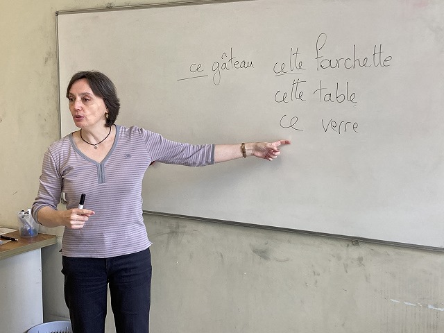 フランス校の研究生の皆さんも到着から約1か月が経ち、授業やフランス校生活にも慣れてきたところですが、やはり「フランス語」には苦労しているようです!フランス校では毎日フランス校の授業があり、実習で使用するフランス語を中心に文法の授業と会話の授業が行われています。