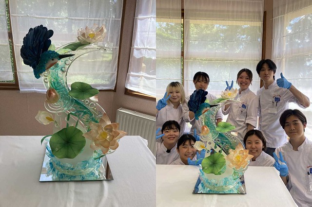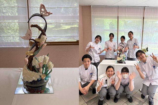 細かい作業と皆さんのイメージをつなげ合わせて完成させることは大変だったとは思いますが、素敵な作品ができたので大満足ですね!!今回の実習で更に砂糖細工に興味が出た人も多かったと思います。コンクールもたくさんありますし挑戦する機会があるかもしれませんね。