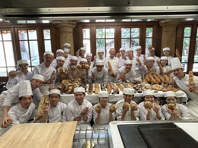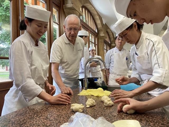 さて、調理の特別実習の「製パン」の授業には製パンのデモンストレーターであるボナール氏が来てくださいました。パンを愛するボナール氏は毎期シャトーに授業をしに来てくださいます。授業は楽しくわかりやすく、人気が高い授業です。