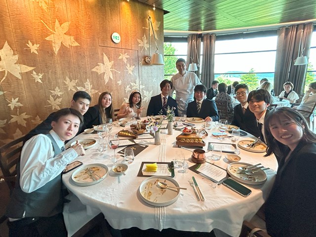シェフのジャック・マルコン氏と記念写真を撮ったり、ブティックでレストランの本やグッズを買ったりと、レストラン滞在中には食事以外にも楽しめることがありましたね!フランスではたくさんの食べ歩きをしていただきたいですが、メゾン・マルコンはその中でもぜひ体験してほしいレストランの1つですのでとてもよい経験、思い出になったのではないでしょうか。夏休み後に行われる卒業記念制作「ムニュ・スぺシオ」の参考にもなったようです。素敵な週末の1日となりました!