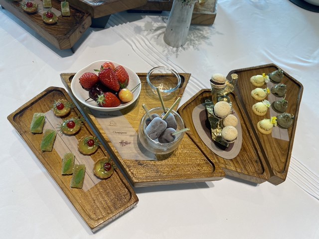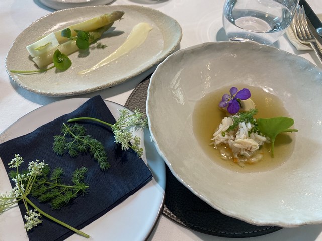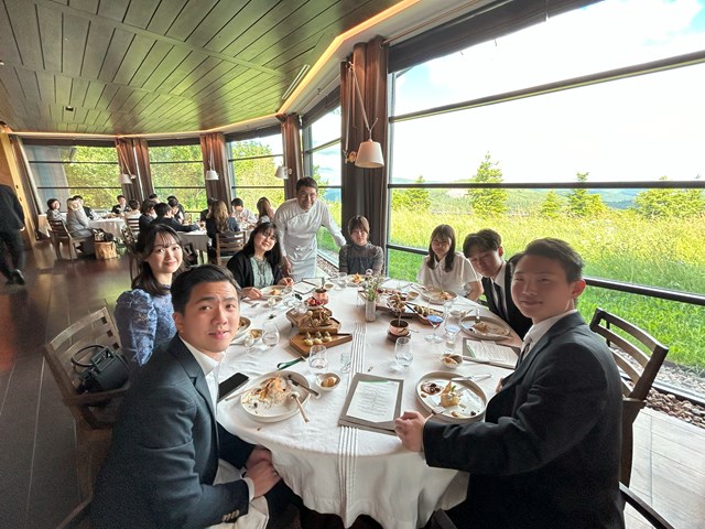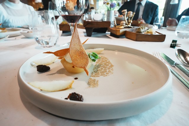 こちらのレストランは近郊で採れるキノコを使ったメニューがスペシャリテです。すべてのメニューにキノコが使用されています。デザートにも使われているのには驚きです!季節のキノコとこのレストラン近郊で取れるハーブなどが使われた料理が振舞われます。皿数も多く、皆さん満足したようでした。3ツ星レストランならではのスマートで素晴らしいサーヴィスにも感動です。