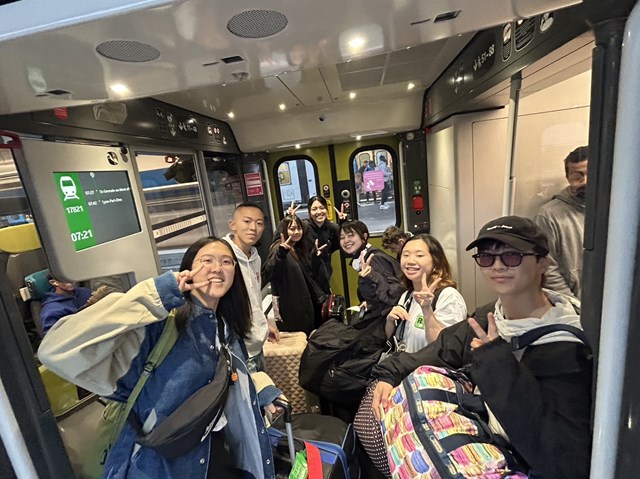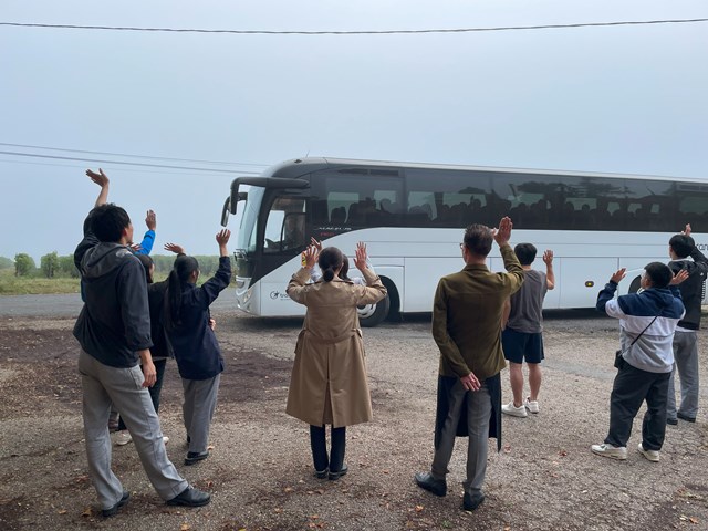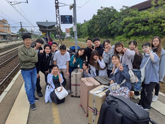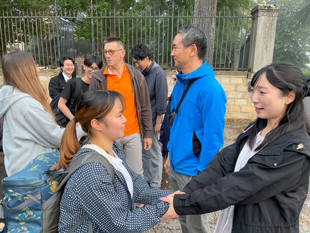 フランス校最寄り駅のヴィルフランシュ駅までは学校が予約したバスで移動します。7時前の出発でしたのでまだ霧の中!でしたが、第1便(早い1便と次の2便で移動)で移動する皆さんのために次の便で移動する皆さんも多くも挨拶に来ていました!フランス校を離れるとなかなか簡単に会える距離ではなくなってしまう人たちもいますので、名残惜しい挨拶でした。お世話になった先生方にも挨拶します。先生方も今期の研究生を送り出すにあたっていろいろな思い出がよみがえると思います。