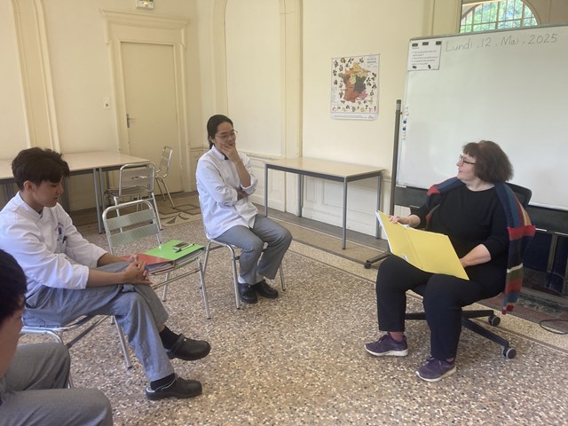 今期の研究生がフランス校に到着して1か月強が経ちますが、「フランス語って難しい!!」という声がよく聞こえてきます。確かにフランス語は難しいです(笑)。残念ながらフランスに住んでいるだけではフランス語はできるようになりません。それなりに勉強する必要がありますが、フランス校ではフランス語の授業は二人の先生によって行われています。文法担当のシルヴィ先生と会話担当のブリジット先生です。どちらの先生も日本語が堪能で、日本語での質問にも丁寧に答えてくれます。