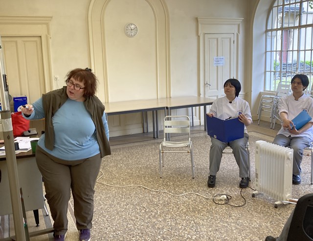 会話の授業は実習授業で必要な内容を中心に会話の練習をしながら学習します。日本語でもそうですが、会話というのは話せば話すほど上手になります。回数をこなすことが必要です!!ブリジット先生は授業に参加している研究生ができるだけ多く発言できるように授業を行います。気を抜いていると当てられますので気が抜けません(笑)。間違えても回数を多く!話すことが大事です。わからないことは日本語で聞いてもブリジット先生は日本語でも教えてくれますのでどんどん質問した方がよいですね。