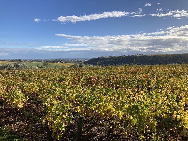 Bonjour, 辻調グループフランス校です。本日は風が強く、嵐が来るのかな?と思うような気候のフランス校近郊ですが、気温は暖かめです。フランス校の周りのブドウ畑も葉っぱが黄色く色づいてきました。特にこの季節はフランス校の立地は素晴らしいなとしみじみ感じます。ブドウの収穫は9月に終了していますが、11月の第3木曜日にフランス校近郊のワイン畑で取れたブドウで造られたボジョレワイン「ボジョレヌーヴォー」が解禁されます。今年のできも楽しみですね。