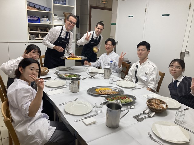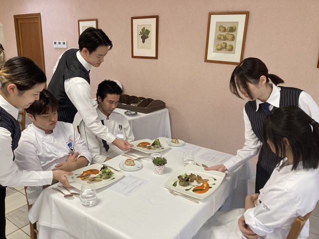 フランス校の授業で出会ったサーヴィスでこの道を選んでサーヴィスマンとして働いている卒業生もいるくらい、興味を与えてくれる授業です。覚えることは多いですが、フランス文化を学習するという意味でも面白い授業です。これからも調理・製菓の授業と共に頑張って受講していただきたいと思います。