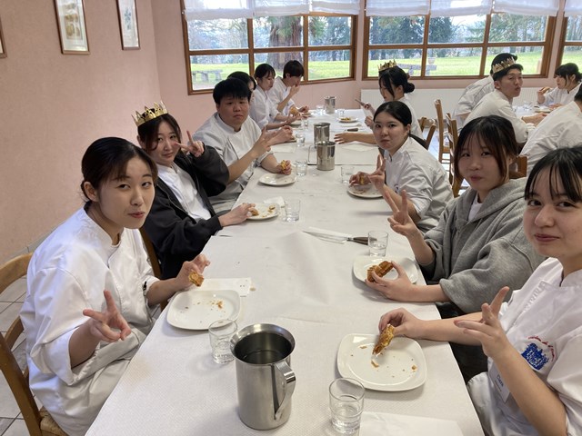 各班フェーヴが一つ当たるようになっていたので、班に一人ずつ王冠をかぶった人が。本日の王様です(笑)。おめでとうございます。今年もよい年になるといいですね!