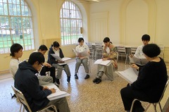 会話の授業では、学生たちが6人か7人のグループになって、調理場かラボで毎日使うフレーズや、フランスで生活するのに必要な表現の練習をします。この授業のおかげで、学生たちも自信を持ってナレ先生やデュラン先生とフランス語で話すことが出来ます。